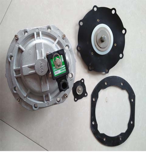 DSF-80电磁脉冲阀直接安装在气包上,具有 的直通喷吹,工作气源损换较小。电磁阀是脉冲袋式除尘器清灰喷吹系统的压缩空气“开关”。受脉冲喷吹控制仪输出信号的控制,对滤袋逐排喷吹清灰,使除尘器的阻力保持在设定的范围之内,以除尘器的处理能力和除灰效率。脉冲喷吹控制仪电信号消失,电磁脉冲阀衔铁复位,后气室放气孔关闭,后气室压力升高使膜片组件紧贴阀的输出口,电磁脉冲阀又处于“关闭”状态。