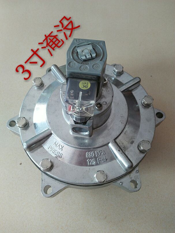 脉冲电磁阀为直角型脉冲阀,其进气口与出气口之间的夹角为90℃,亦称隔膜阀,是脉冲袋式除尘器清灰喷吹系统的压缩空气“开关”,受脉冲喷吹控制仪输出信号的控制,对滤袋逐排(室)喷吹清灰,使除尘器的阻力保持在设定的范围之内,以除尘器的处理能力和收尘效率。
